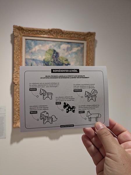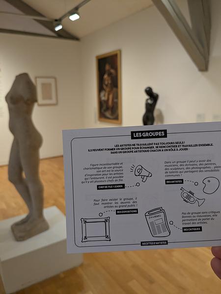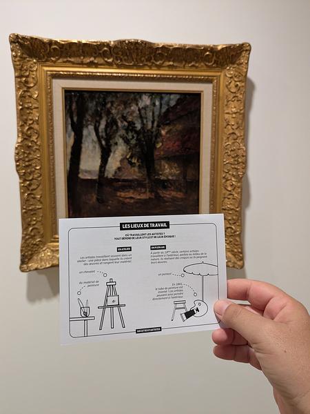 Disséminées dans plusieurs salles du musée, des cartes postales permettent aux visiteurs d'en savoir plus sur une technique utilisée par les artistes. Au dos, une recette très facile à réaliser permettra d'expérimenter la technique une fois à la maison !