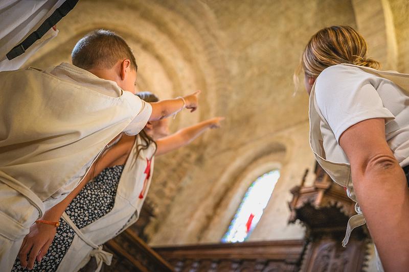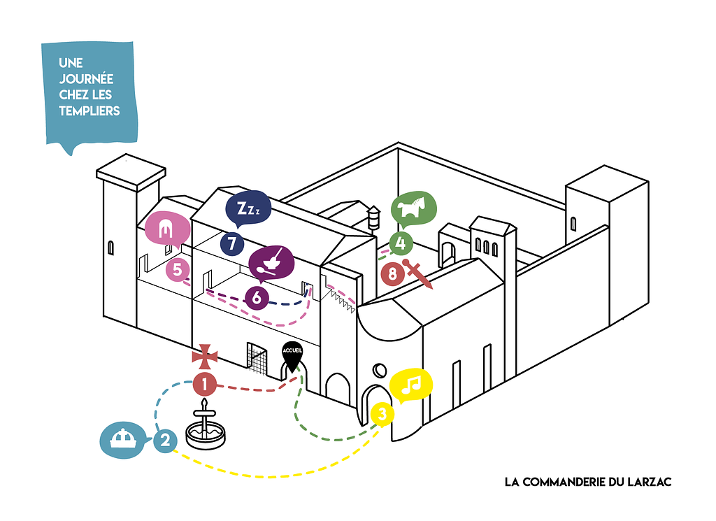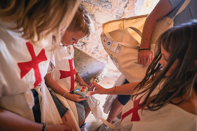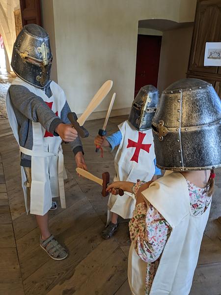 Munie d'un sac rempli de costumes de templiers, ainsi que d'une boîte à histoire, chaque famille part à la découverte de la commanderie de Sainte-Eulalie-de-Cernon. Le temps d 'une visite, les familles vont vivre leur toute première journée dans la peau d'un moine soldat.