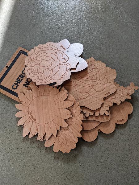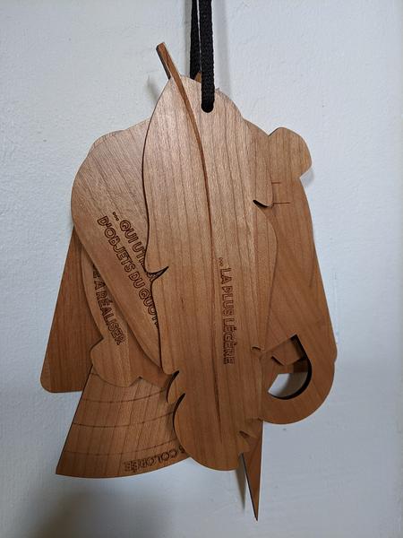 prestations réalisées : conception, design et production (découpe laser sur bois de cerisier)