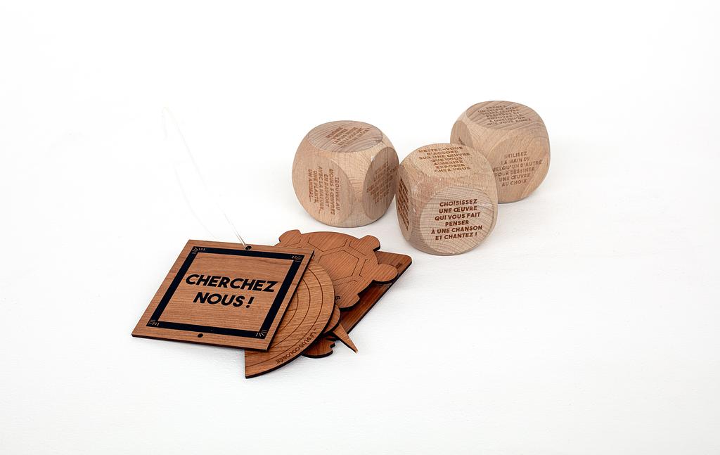 prestations réalisées : Co-construction des contenus, design et production (découpe laser, découpe vinyle, impression sur tissus)