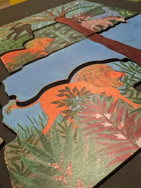 prestations réalisées : Conception de deux puzzles géants mis à disposition des visiteurs de l'exposition "Brésil, identités"